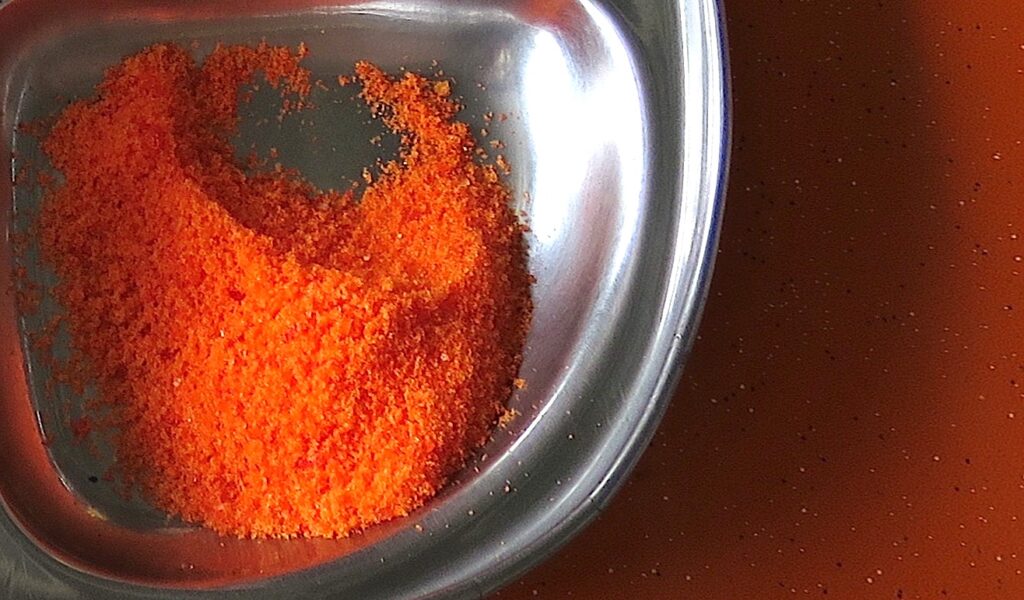Pretty to look at and a uniquely Singapore invention, orange sugar or red jaggery sugar has been produced in Singapore by Cheng Yew Heng Candy Factory since 1947. It is made by processing cane rock sugar, colouring and edible oil. You’ll see orange sugar in many desserts and snacks including appom, putu mayam (Indian string hoppers) and peanut cake (min jiang kueh).